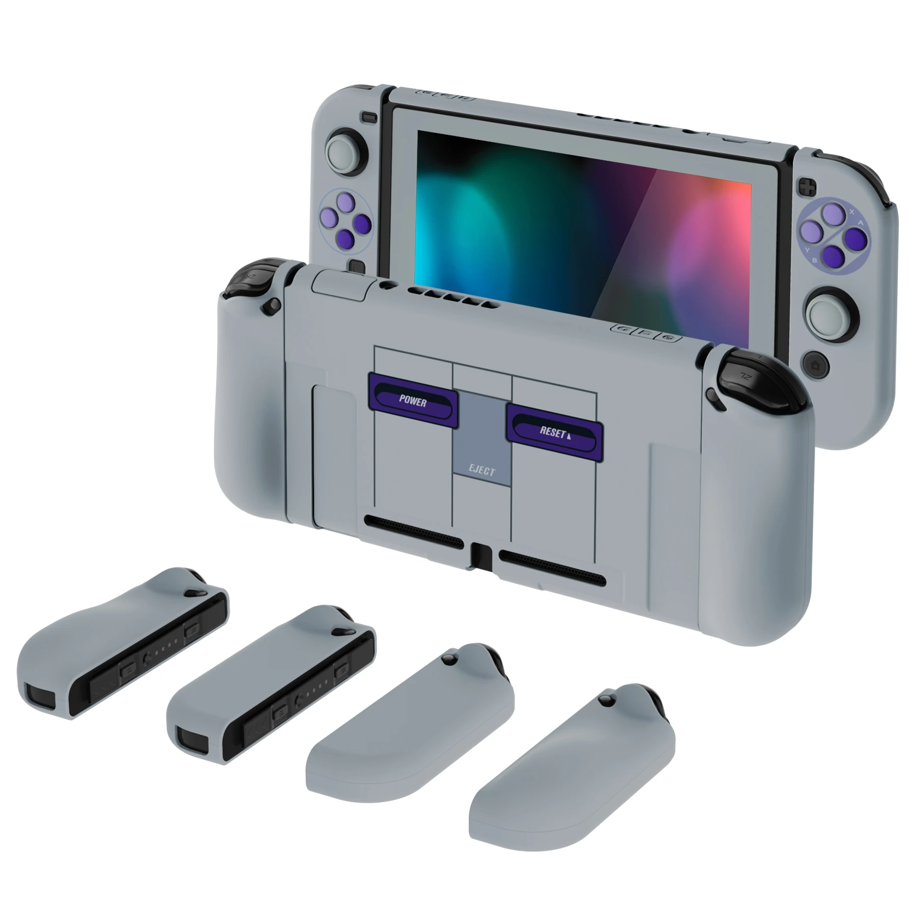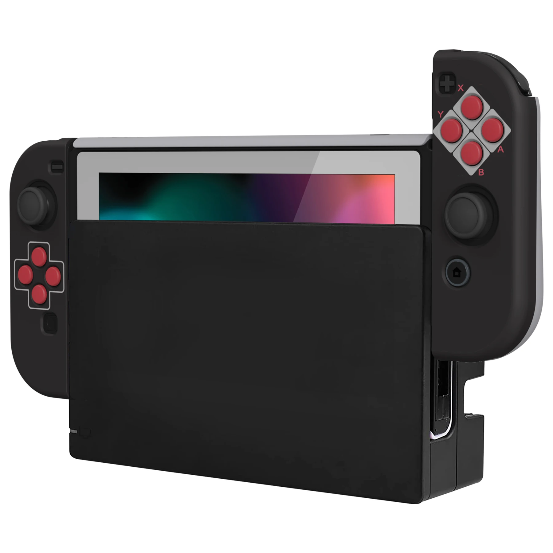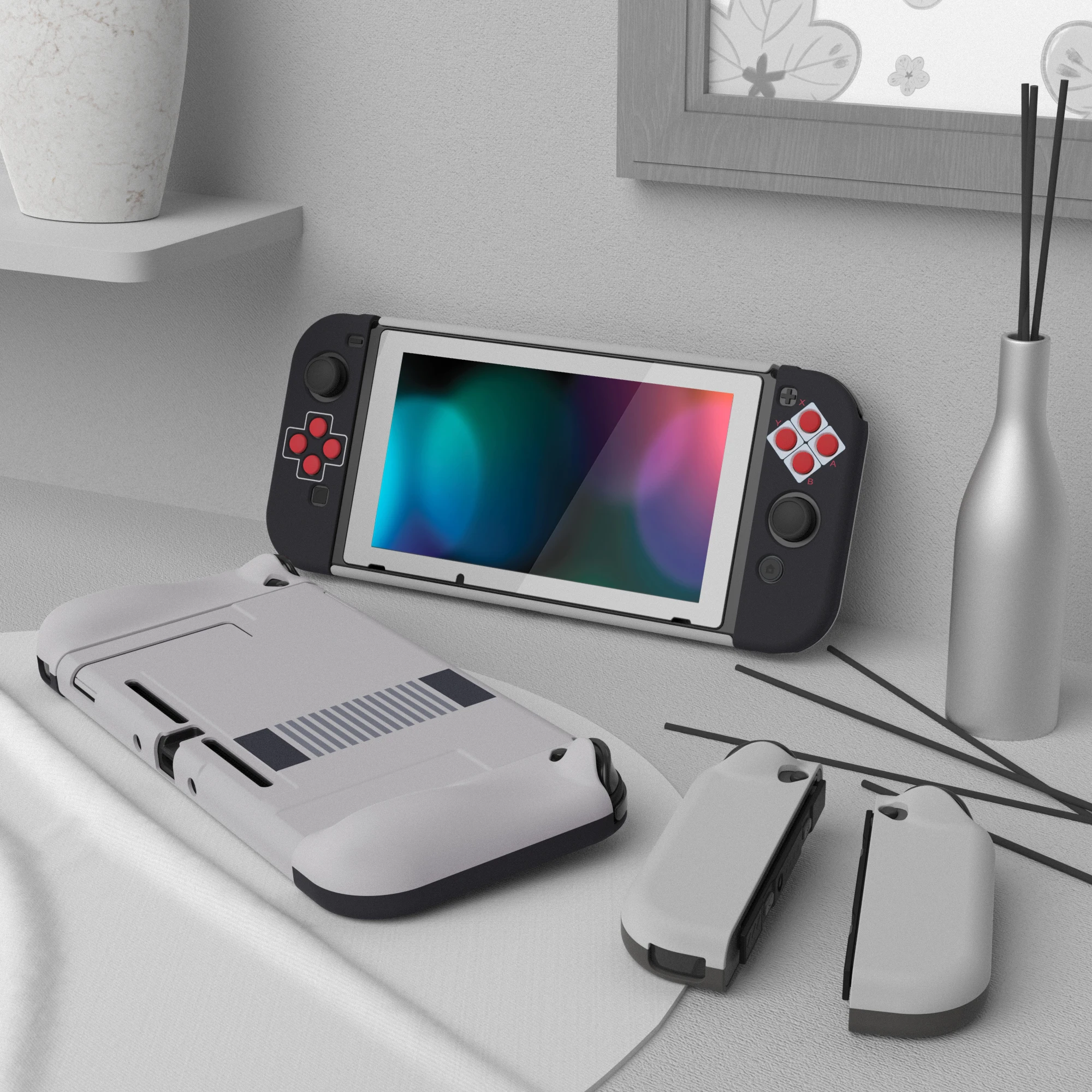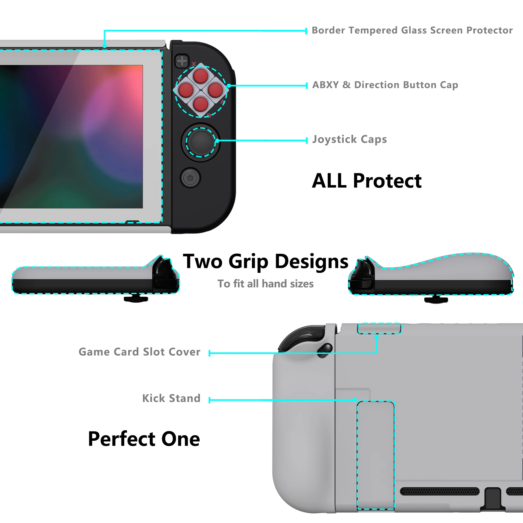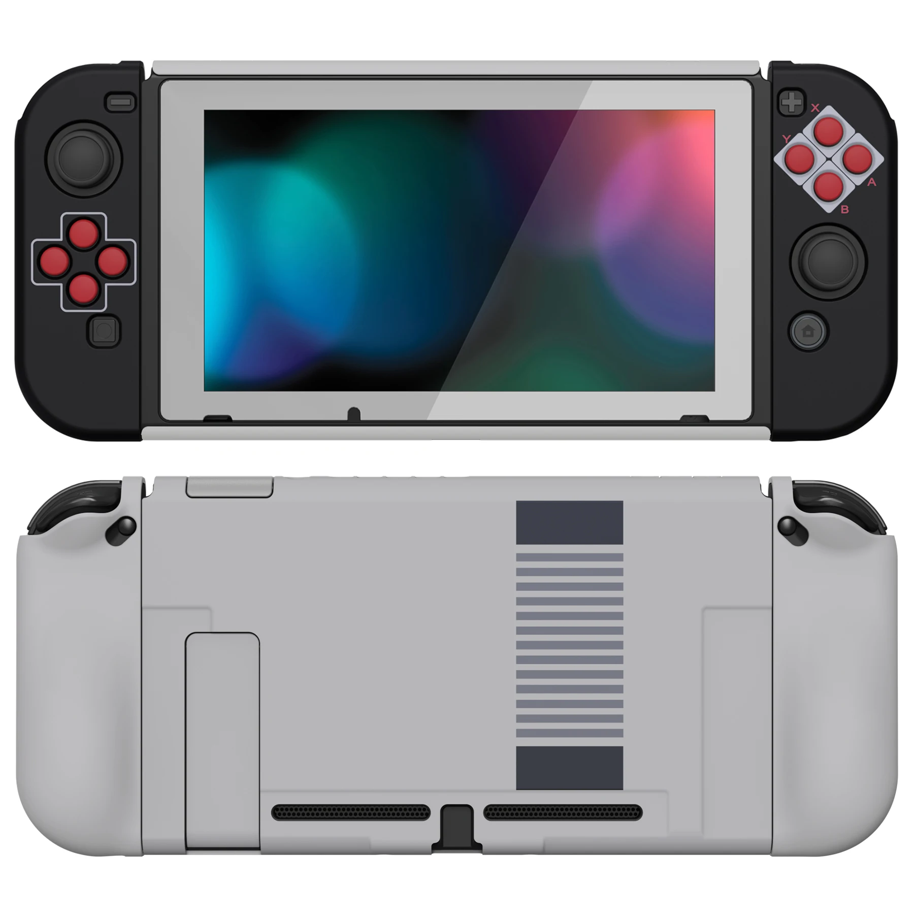 • Dockable case with ergonomic grip cover is made of sturdy PC material, shock-absorbent and anti-scratch, helps to provide all round protection for your switch from accidental bumps, drops, scratches, dust, and extends the lifetime of the device.